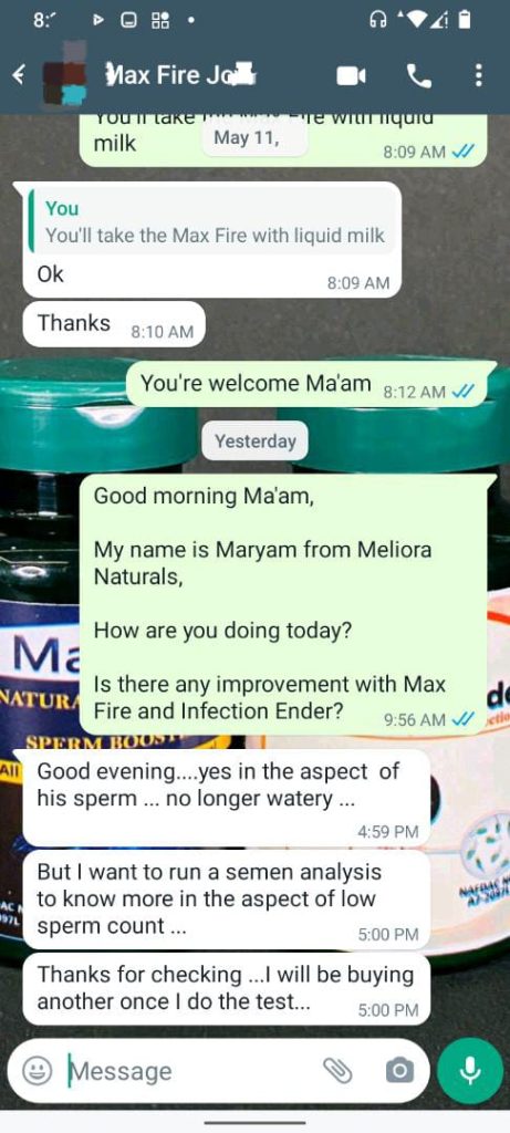 Zero sperm. Obstructive azoospermia. Surgery was quoted at 400,000 naira with no guarantee. I tried this combo because at that point what did I have to lose? After 7 weeks my count was 9 million. My wife conceived naturally two months later. I have no words for what that moment felt like when she showed me the test. God used this combo to complete what we could not complete ourselves.